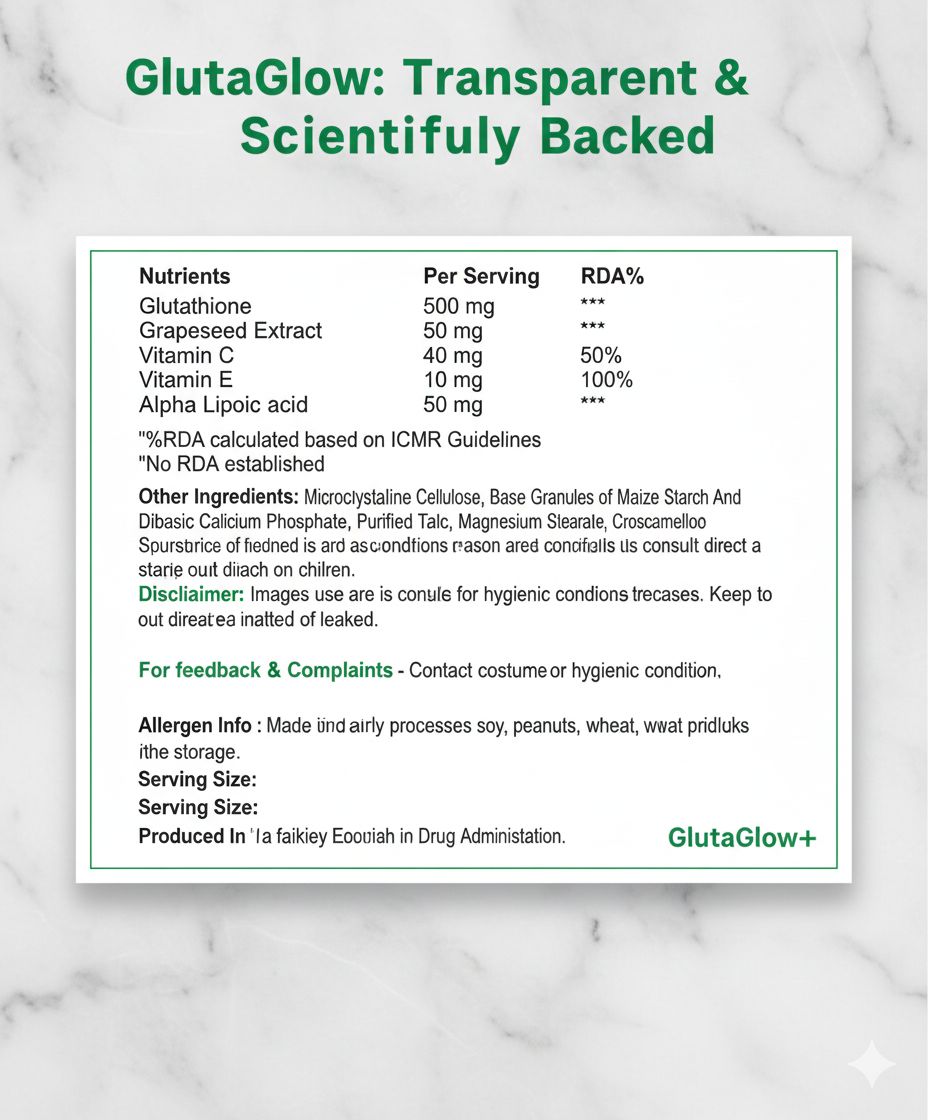 Glutathione 500mg + Vitamin C 40mg + Grapeseed Extract 50mg +Vitamin E 10mg +Alpha Lipoic acid 50mg